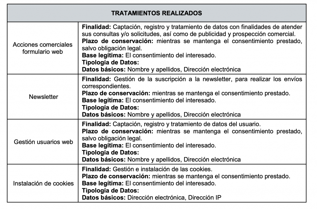Derecho de Acceso: Es el derecho del usuario a obtener confirmación sobre si se están tratando sus datos y, en tal caso, los concretos datos personales tratados y la información legal del tratamiento (finalidades, base legitimadora, plazos de conservación, cesiones, origen de los datos, etc.).